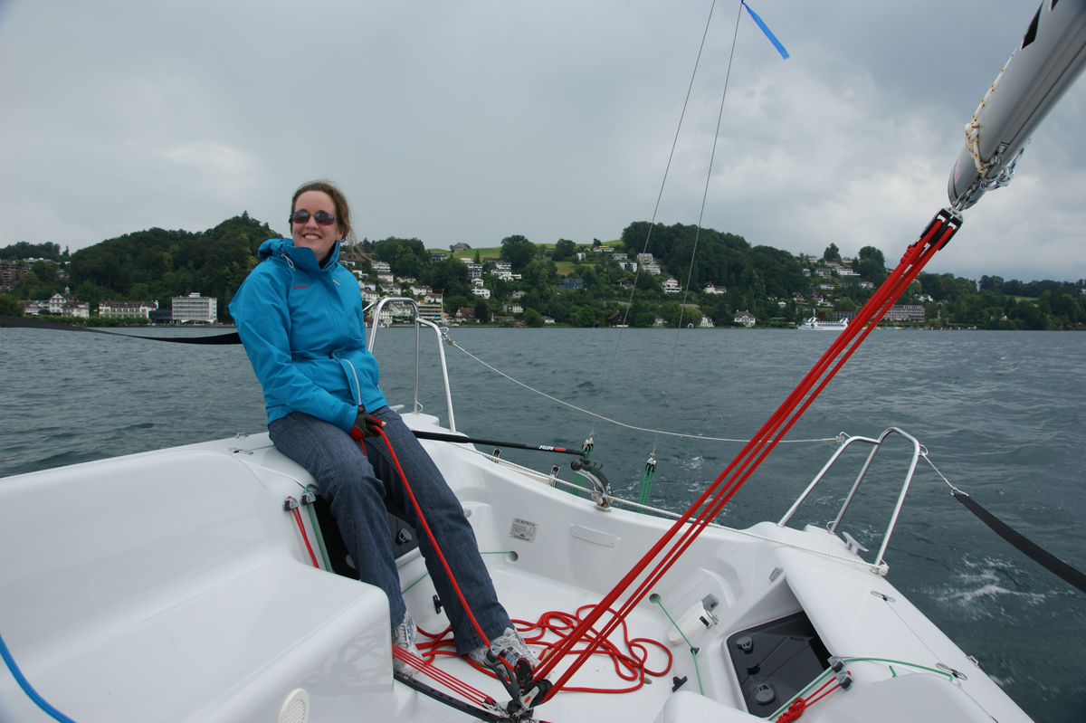 Am quietschenden Steg sind wir eingeschlafen, früh am Sonntag wieder aus den Federn gestiegen und den frischen Wind genützt. Als dann über Mittag die Flaute uns heimsuchte, wärmten wir uns in einem Restaurant mit heisser Schokolade. Nach dem Sonnenbad kam schon bald der Wind und mit ihm ein paar Regentropfen. Mit gekonnten Schlägen kreuzten wir zum Hafen Luzern auf und brachen jegliche Geschwindigkeitsrekorde (dieses Wochenendes: 6,8kn). Mit zerzaustem Haar erreichten wir den Hafen und machten uns erledigt auf den Heimweg.
